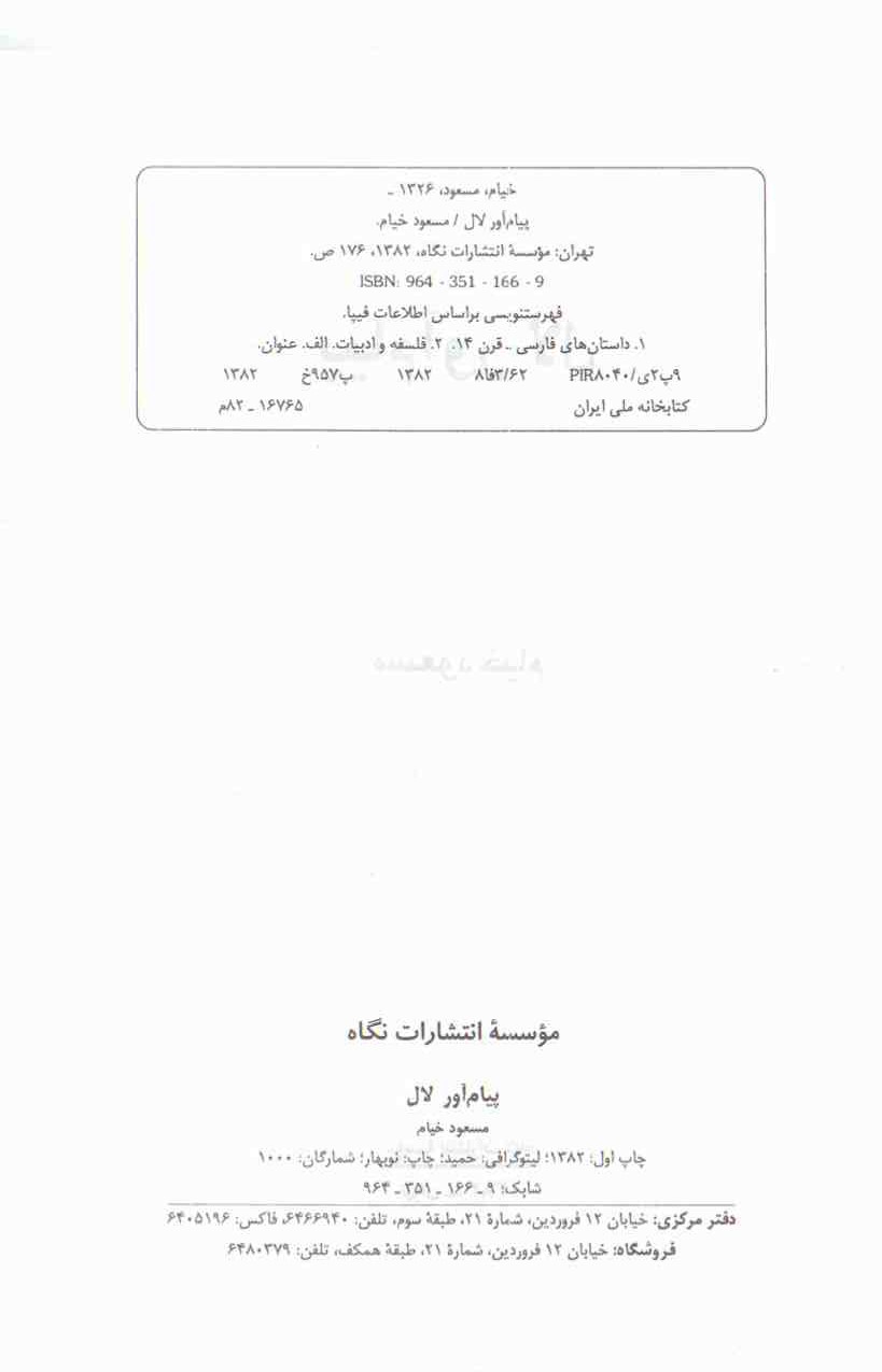 🔖 book_keywords : دانلود فایل pdf پیام آور لال نوشته مسعود خیام ترجمه طرح روی جلد: نقاشی رنگ روغن اثر پری یوش گنجی