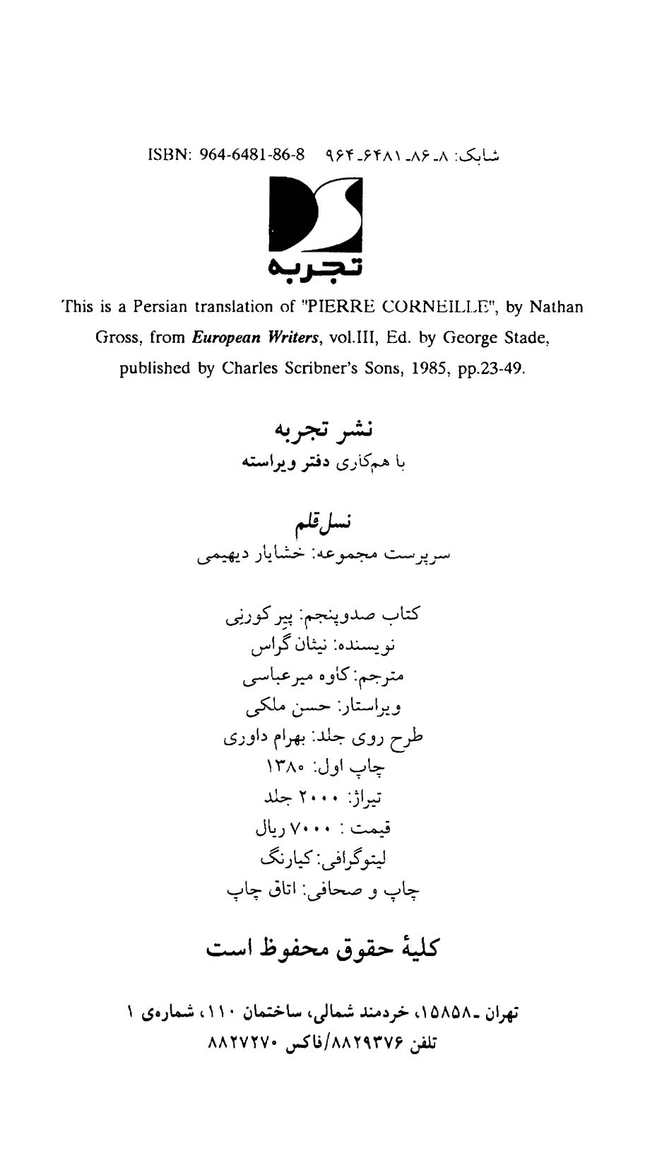 یکصد و پنجمین شماره از مجموعه “نسل قلم “به بررسی و نقد آثار “پیر کورنی” نمایشنامه نویس فرانسوی اختصاص دارد .یادآور میشود “پیر کورنی “با سی و دو نمایشنامهای که بین سالهای ۱۶۲۹و ۱۶۷۴نگاشت، تراژدی فرانسوی را دگرگون ساخت و کمدی مدرن را در فرانسه پی افکند .