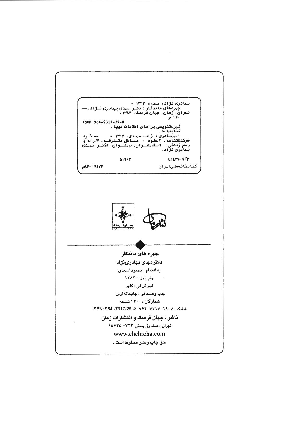 🔖 book_keywords : دانلود فایل pdf چهرههای ماندگار: دکتر مهدی بهادرینژاد نوشته مهدی بهادرینژاد