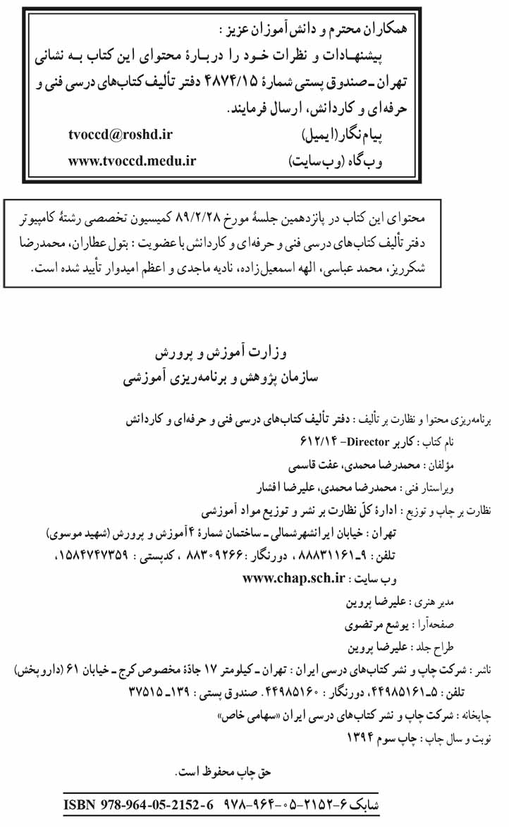🔖 book_keywords : دانلود فایل pdf کاربر Director سال ۱۳۹۴ نوشته انتشارات پیام کوثر