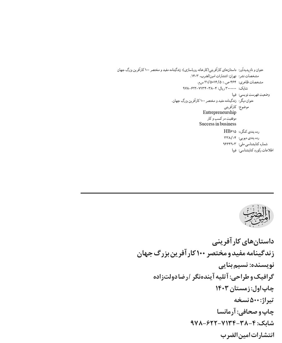 نکته قابل توجه دیگر در مرور زندگی کارآفرینان به شیوه عمل آنها مربوط است. کسب و کارهای بزرگ عموماً از ایده های خلاق و در ابعاد کوچک آغاز می شوند و معمولاً پس از طی چندین سال به توسعه می رسند.. نکته بسیار مهم اینکه همین کسب و کارها حتی پس از فوت یا بازنشستگی موسس به هیچ عنوان به سمت تعطیلی یا تعدیل نمی روند و اتفاقاً در نسلهای بعدی (الزاماً نسلهای بعدی از خانواده موسس نیستند.) مسیر توسعه را با شتاب بیشتری طی می کنند. کسب و کارها در جهان توسعه یافته در بستری از ثبات پیش می روند و برگ برنده آنها تداوم کار است. مطالعه این کتاب برای هر فعال اقتصادی یا جوان کارآفرین یا علاقه مند به کارآفرینی می تواند مفید و آموزنده باشد. در این کتاب سعی شده نقاط عطف زندگی کارآفرینان مورد اشاره قرار گیرد.