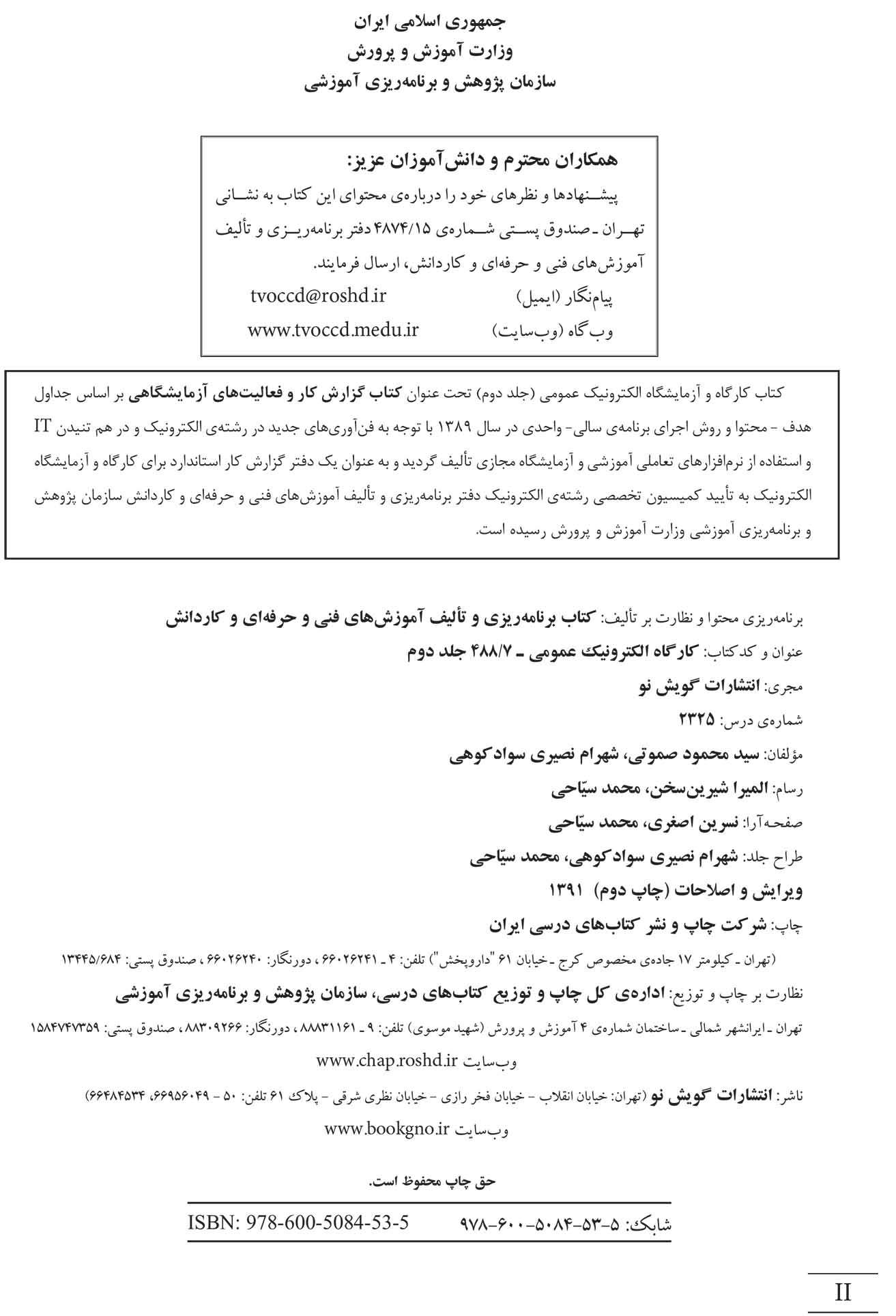 کارگاه الکترونیک عمومی (جلد دوم) سال ۱۳۹۱