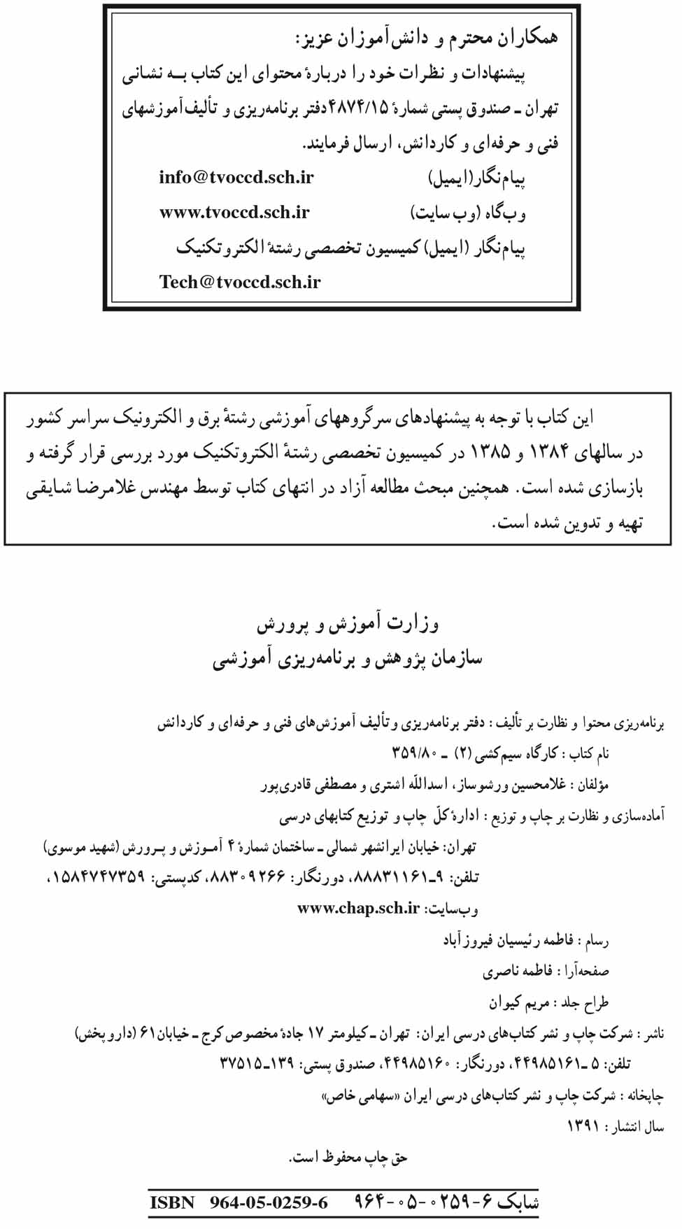 🔖 book_keywords : دانلود فایل pdf کارگاه سیم کشی (۲) سال ۱۳۹۱ نوشته جمعی از نویسندگان