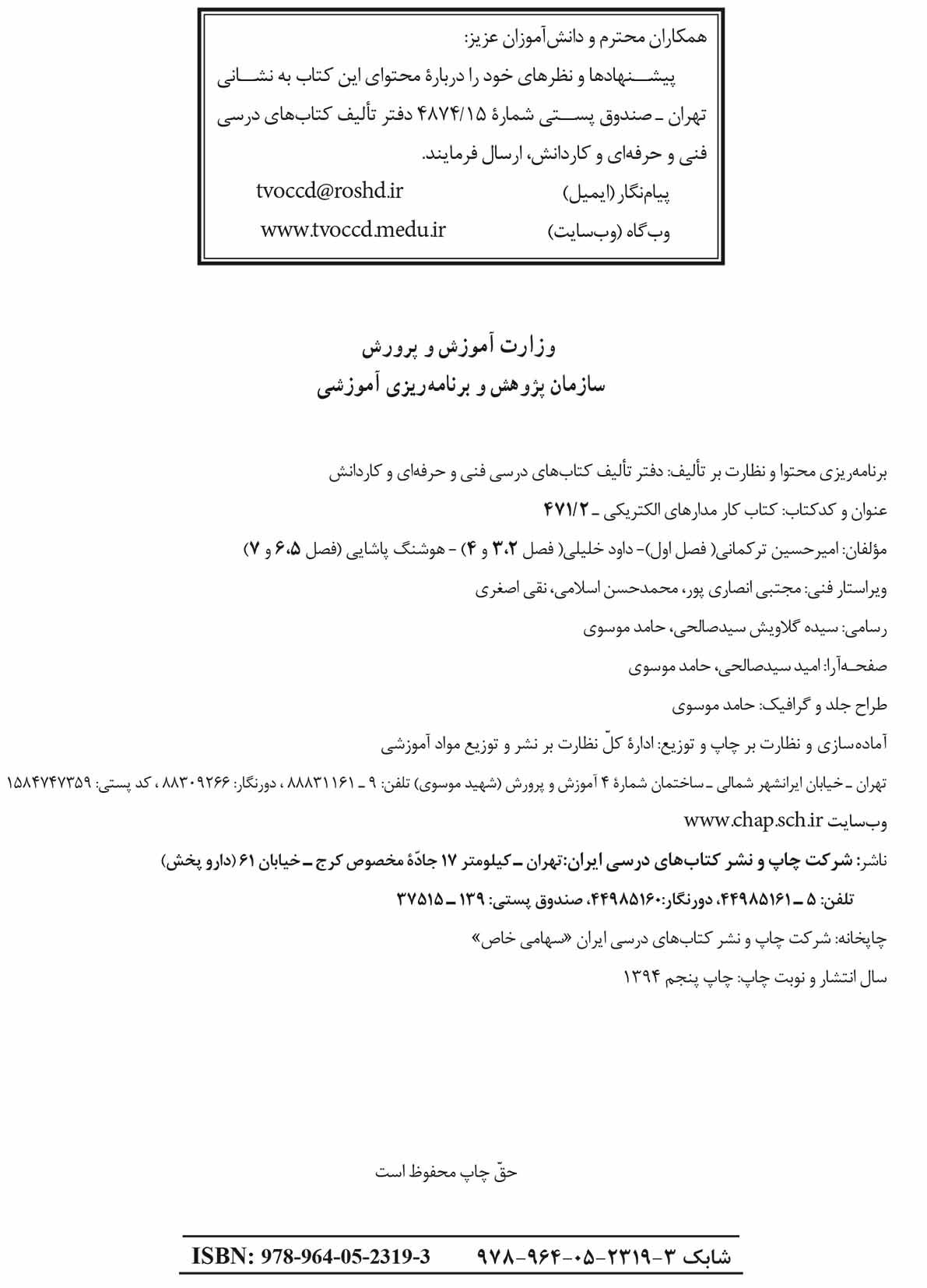 🔖 book_keywords : دانلود فایل pdf کتاب کار مدار های الکتریکی سال ۱۳۹۴ نوشته جمعی از نویسندگان
