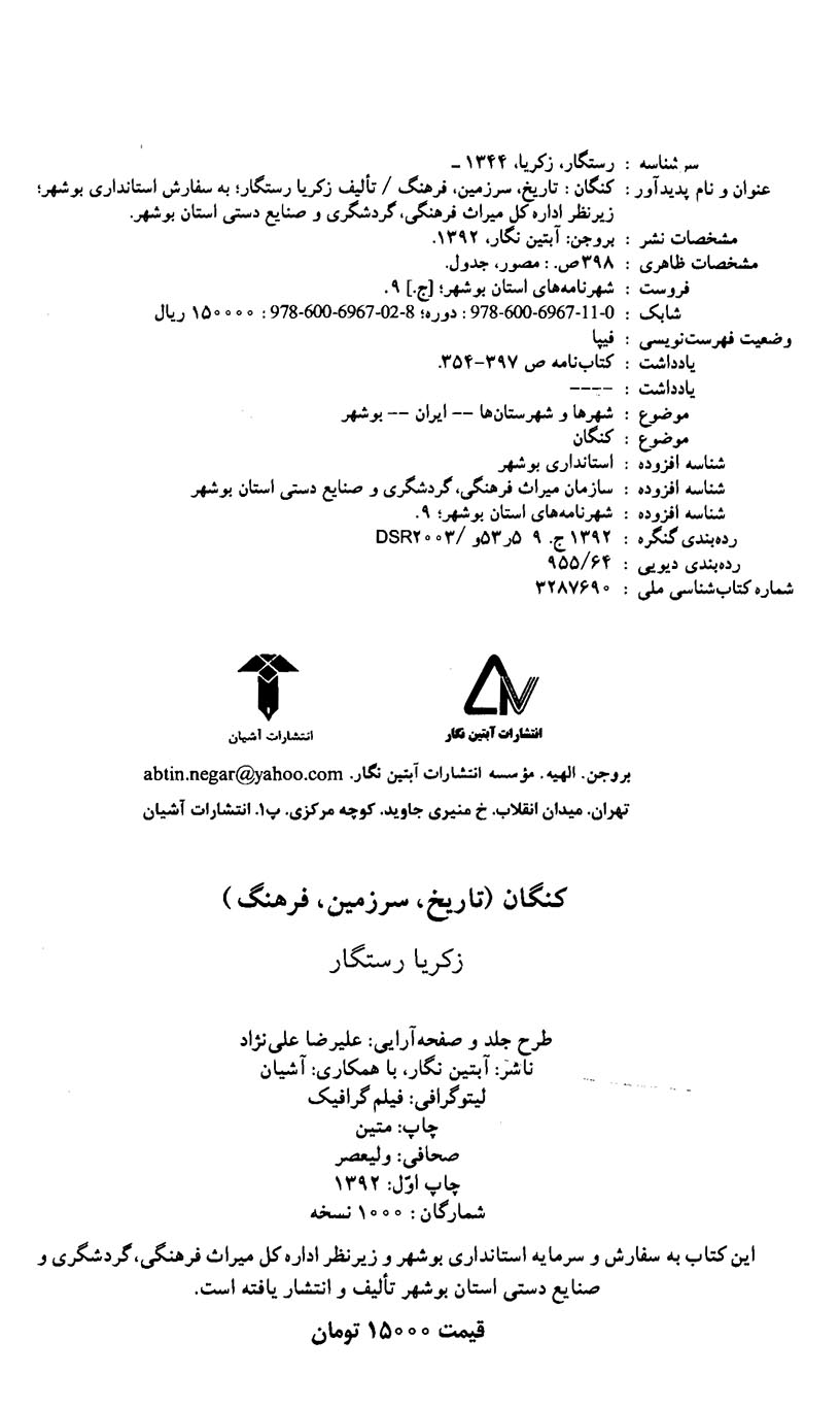 🔖 book_keywords : دانلود فایل pdf کنگان: تاریخ، سرزمین، فرهنگ – ۹ نوشته زکریا رستگار