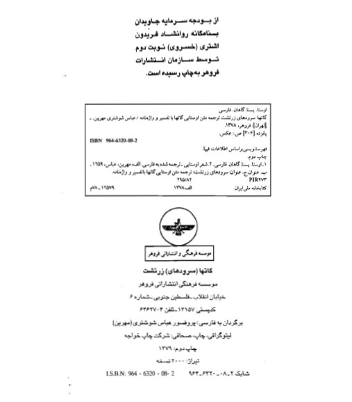 متن اوستایی گاتها با ترجمه و تفسیر و واژه نامه