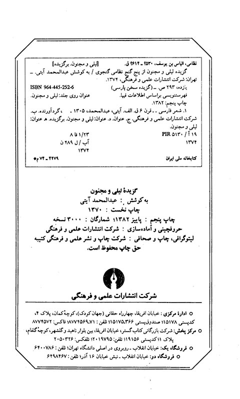 🔖 book_keywords : دانلود فایل pdf گزیده لیلی و مجنون از پنج گنج نظامی نوشته نظامی گنجوی ترجمه به کوشش: عبدالمحمد آیتی