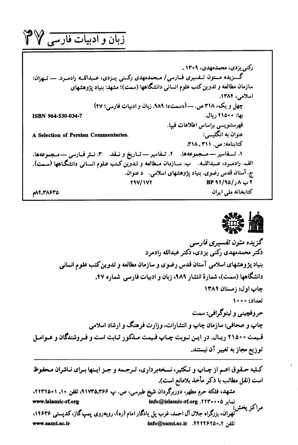 🔖 book_keywords : دانلود فایل pdf گزیده متون تفسیری فارسی نوشته محمدمهدی رکنی یزدی، عبدالله رادمرد