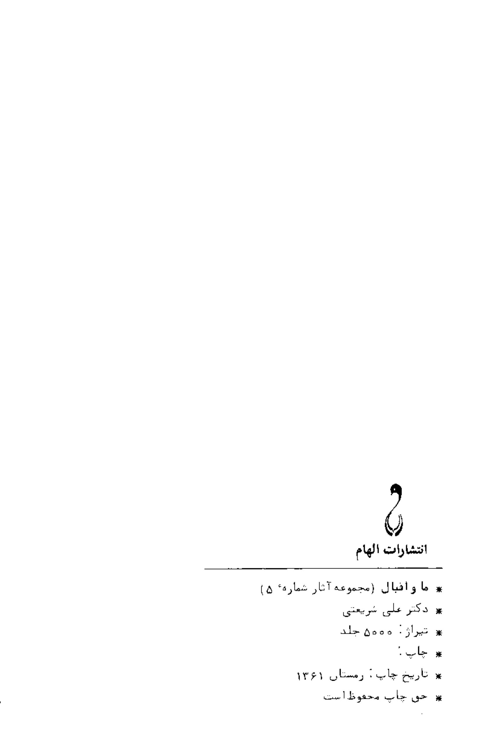 همچنین در صورت لزوم، بمنظور روشن شدن برخی از نکات و یا ذکر مآخذی که در متن بدانها اشاره رفته است، یادداشت ها و توضیحاتی کوتاه در بخش پیوست ها افزوده می شوند. یادآوری این نکته به جاست که بخش پیوستها، توسط ناشر این مجموعه تهیه می شود و بنابراین “دفتر” مسوول کلیه نابسامانی ها و نارسائی های آنست. در هر حال امیدواریم که انسانهای حق طلب و آزاداندیش و متعهد در کتب این مجموعه اصیل ترین و مطمئن ترین وجوه آثار وی را بیابند.