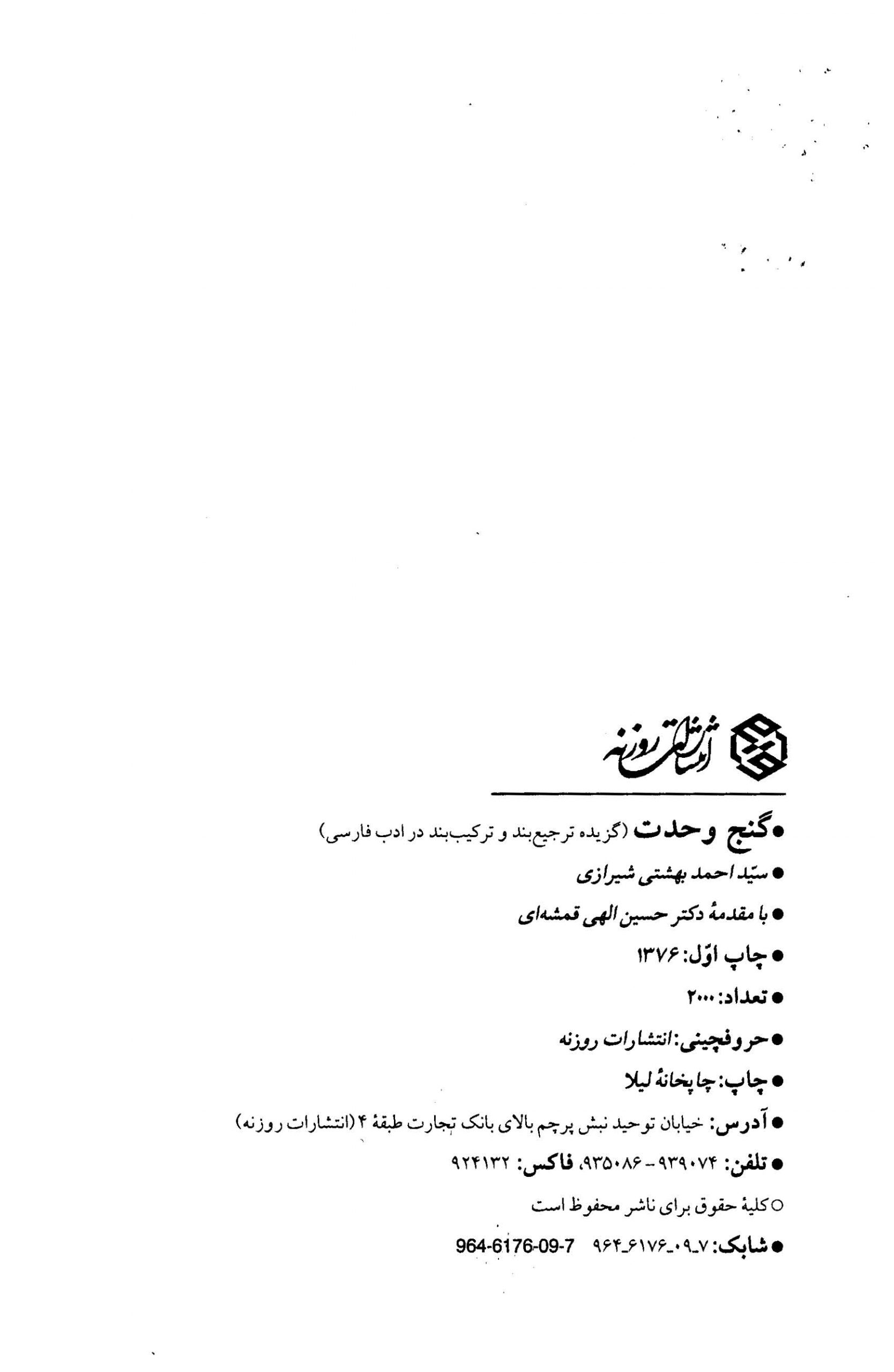 گنج وحدت؛ گزیده ترجیعبند و ترکیببند شعر پارسی از آغاز تا امروز به انضمام شرح ابیات