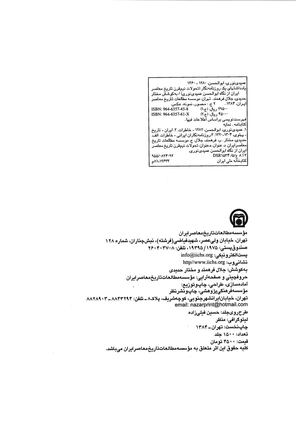 | شناسنامۀ کتاب | مؤلفان: مختار حدیدی، جلال فرهمند، ابوالحسن عمیدینوری |