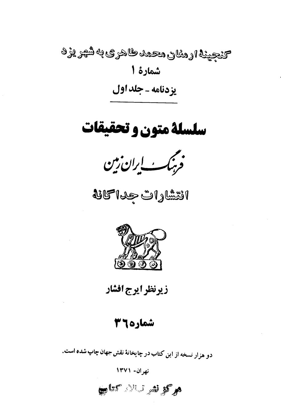 یزدنامه (یزدنما، کتابشناسی، متون پیشینه، پژوهشهای تاریخی، باستانشناسی و آثار باستانی، جغرافیا و سفرنامه، فرهنگ و ادبیات، عکس، سند، تصویر) ج ۱