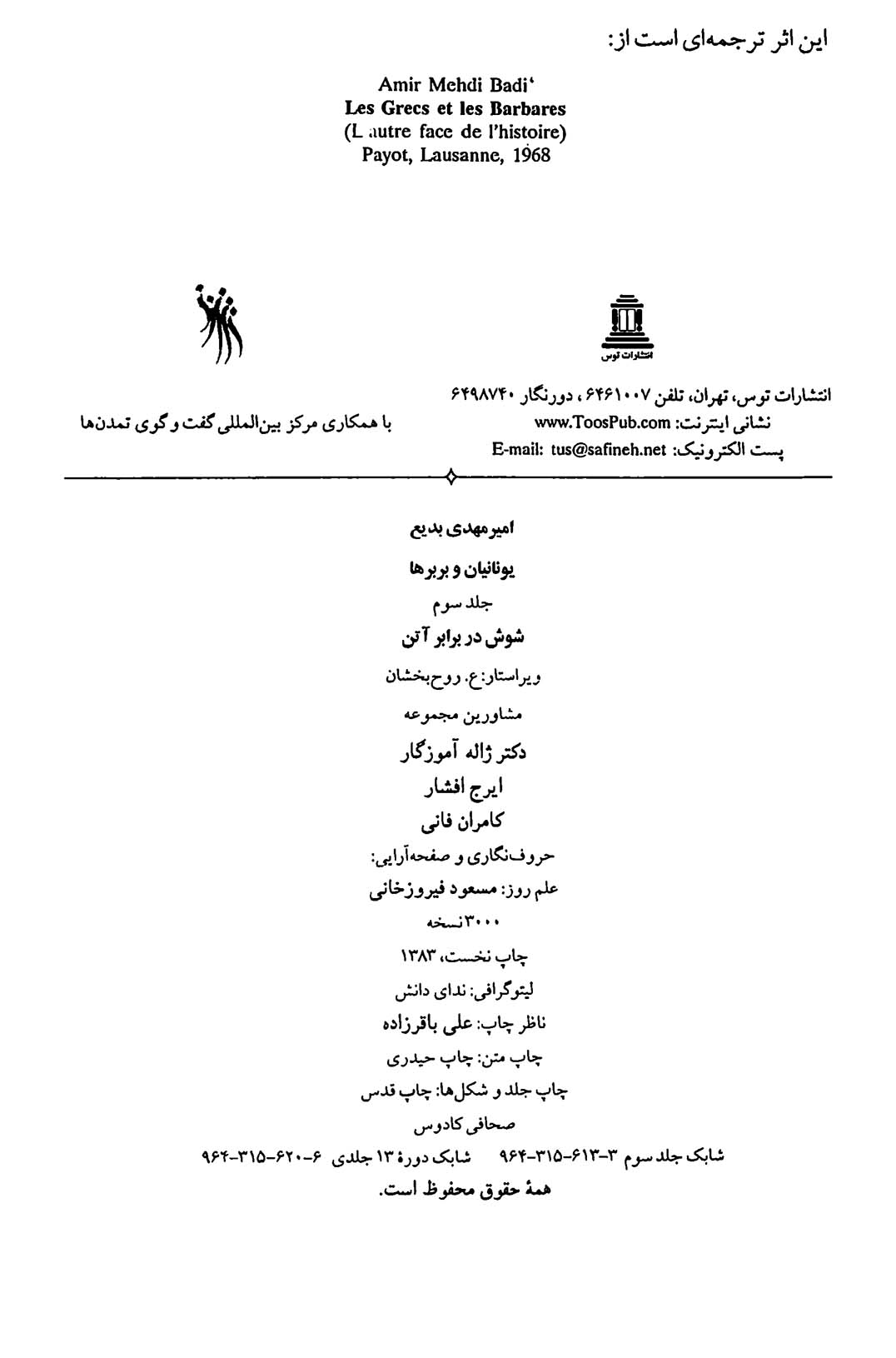 جلد سوم: شوش در برابر آتن، ترجمه قاسم صنعوی