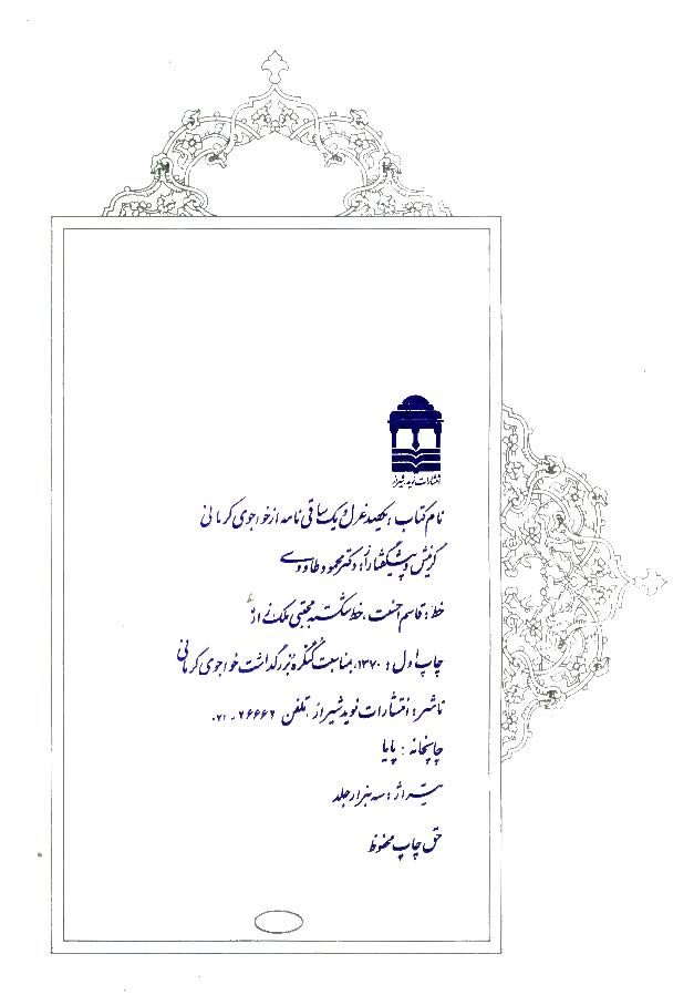 یکصد غزل و یک ساقی‌نامه از خواجوی کرمانی