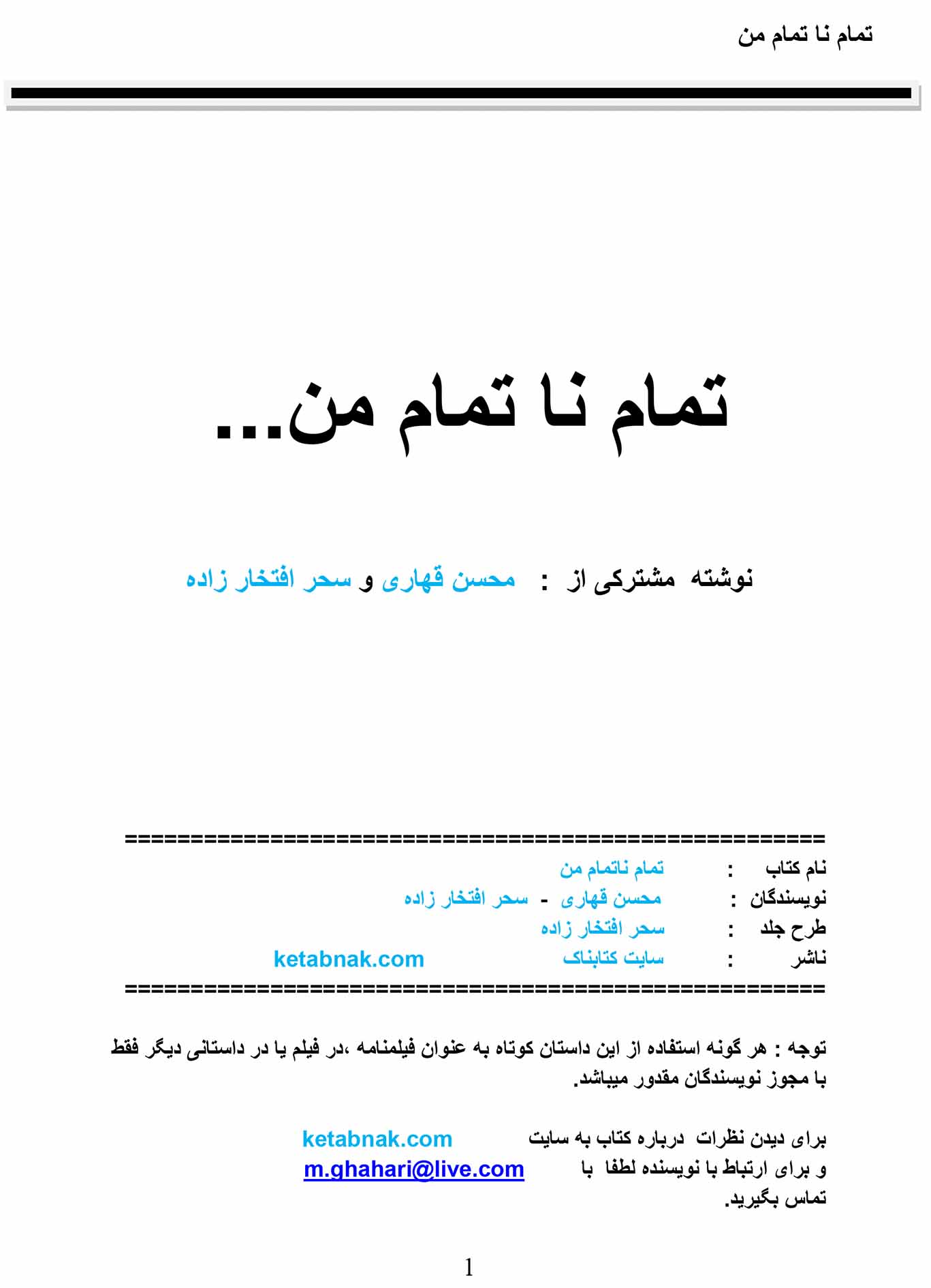 🔖 book_keywords : دانلود فایل pdf تمام ناتمام من… نوشته محسن قهاری سحر افتخارزاده