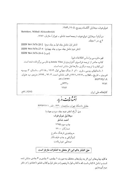 🔖 book_keywords : دانلود فایل pdf دن آرام – جلد ۳ نوشته میخائیل شولوخف ترجمه احمد شاملو