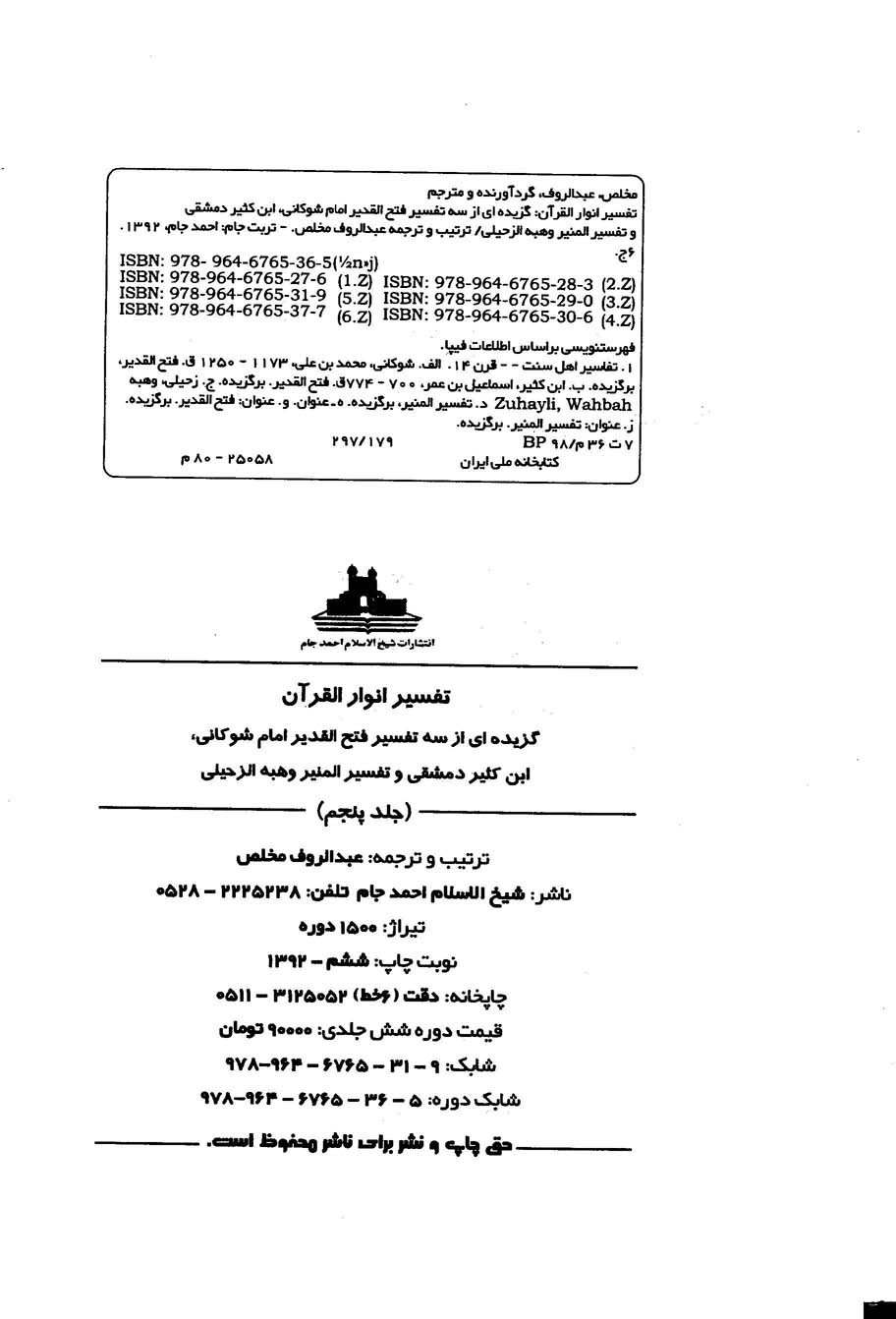 🔖 book_keywords : دانلود فایل pdf انوار القرآن – جلد پنجم نوشته فتح القدیر شوکانی ترجمه عبدالرؤف مخلص