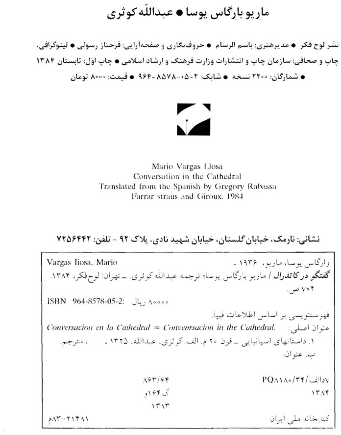 گفتگو در کاتدرال سومین رمان نویسنده است که در محیط شهر لیما شکل میگیرد و ۶۷۶ صفحه دارد.
