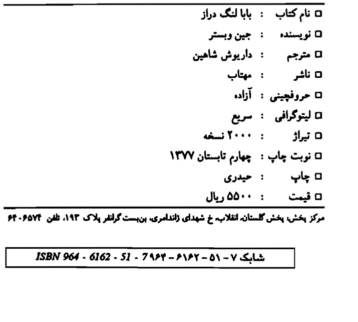🔖 book_keywords : دانلود فایل pdf بابا لنگ دراز نوشته جین وبستر ترجمه داریوش شاهین