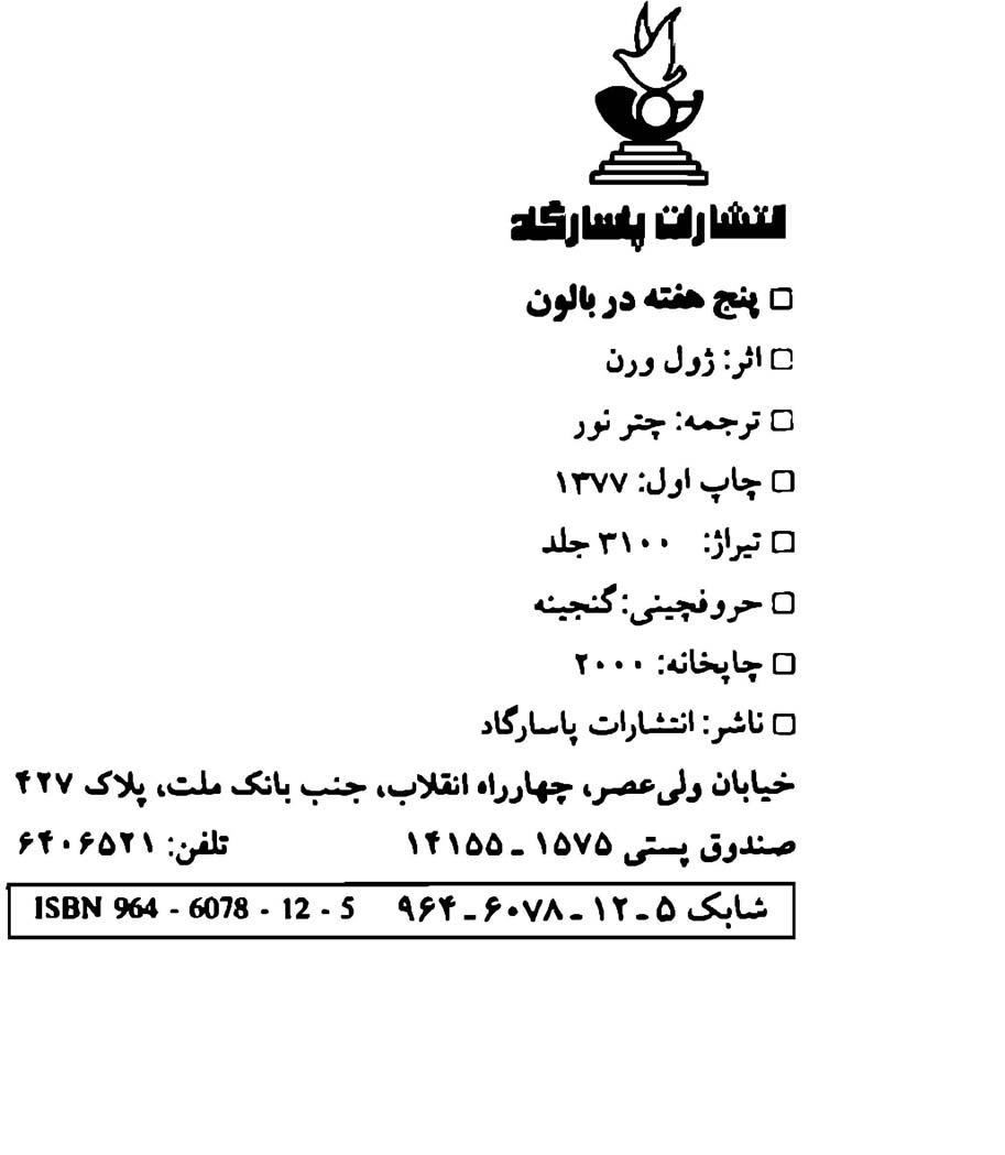 🔖 book_keywords : دانلود فایل pdf پنج هفته در بالون نوشته ژول ورن ترجمه حسین چتر نور