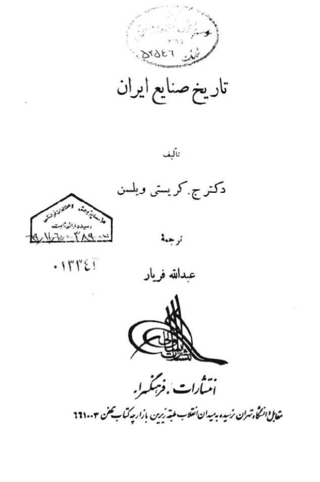 🔖 book_keywords : دانلود فایل pdf تاریخ صنایع ایران نوشته ج. کریستی ویلسن ترجمه عبدالله فریار