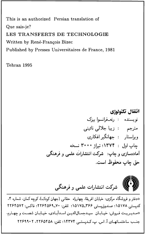 🔖 book_keywords : دانلود فایل pdf انتقال تکنولوژی نوشته رنه فرانسوا بیزک ترجمه زیبا جلالی نائینی