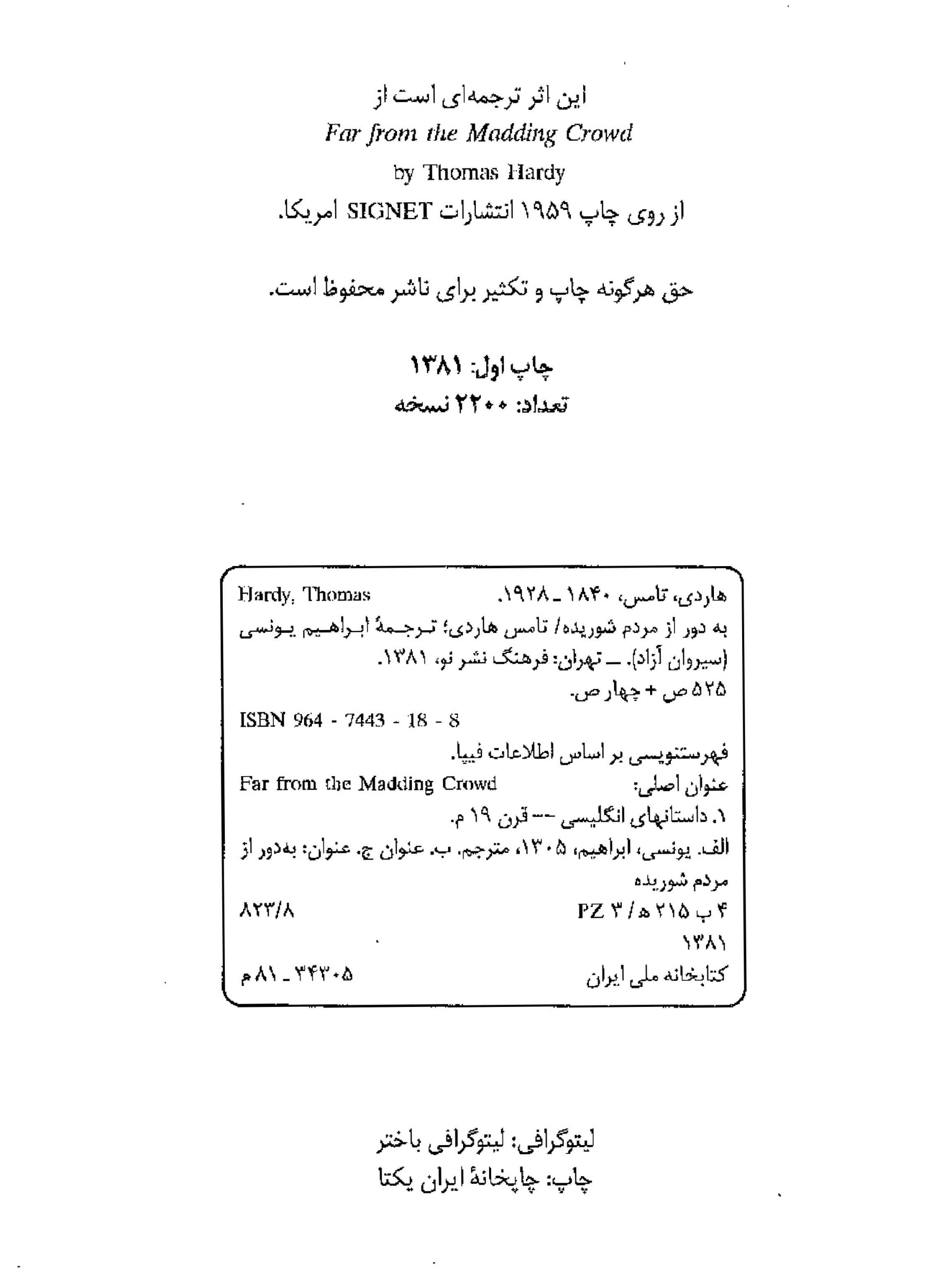 🔖 book_keywords : دانلود فایل pdf به دور از مردم شوریده نوشته توماس هاردی ترجمه ابراهیم یونسی