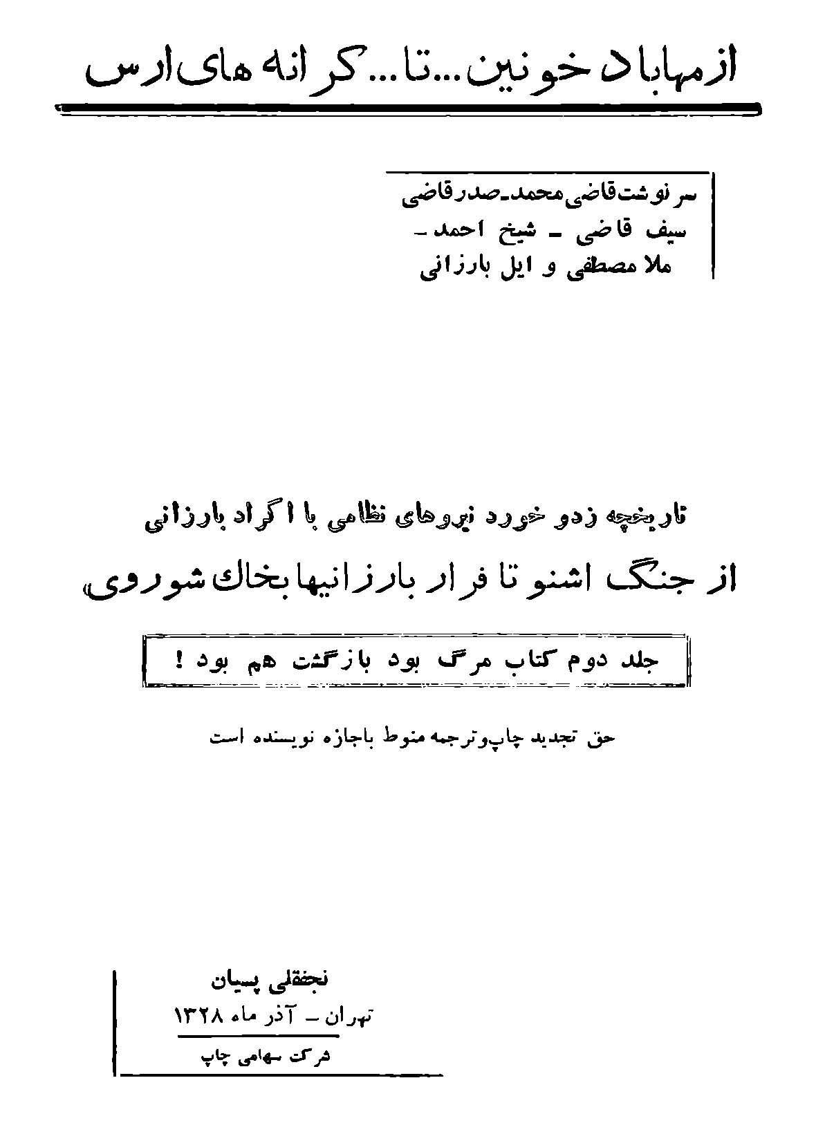 🔖 book_keywords : دانلود فایل pdf از مهاباد خونین تا کرانه های ارس نوشته نجفقلی پسیان ترجمه احمد محمدی، شوکت شیخ‌یزدین