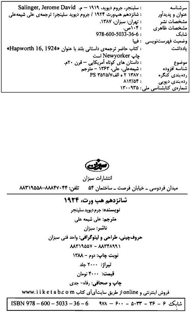 🔖 book_keywords : دانلود فایل pdf شانزدهم هپ ورث، ۱۹۲۴ نوشته جی دی سالینجر ترجمه علی شیعه علی