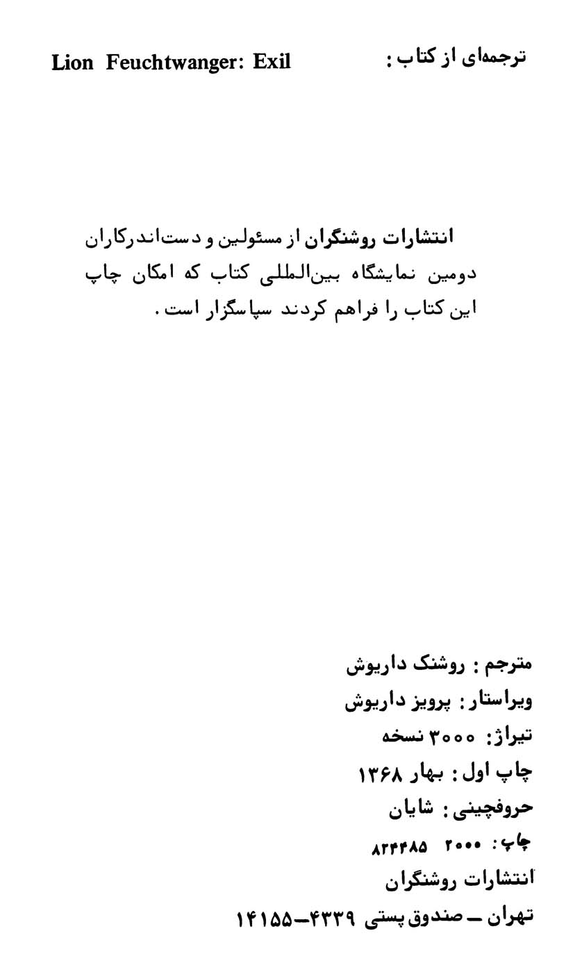 🔖 book_keywords : دانلود فایل pdf در تبعید: سرگذشت تبعیدیان آلمان در دوران سلطه‌ی هیتلر – کتاب اول نوشته لیون فویشت وانگر ترجمه روشنک داریوش