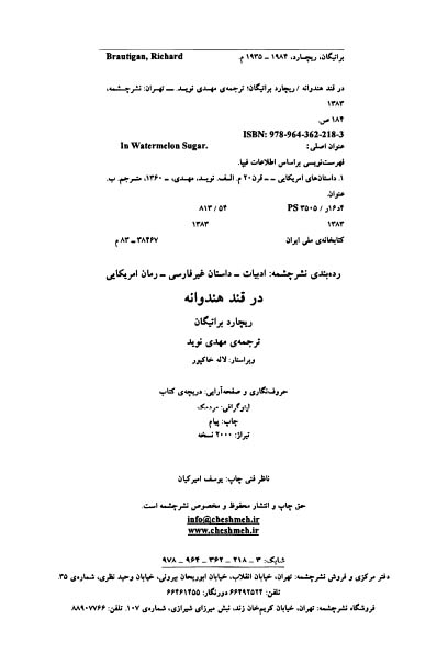 🔖 book_keywords : دانلود فایل pdf در قند هندوانه نوشته ریچارد براتیگان ترجمه مهدی نوید