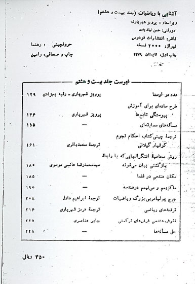 دیگر نسخه های مجله آشنایی با ریاضیات
