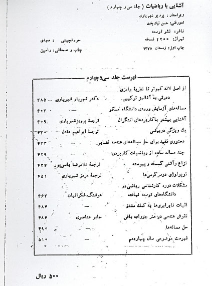 🔖 book_keywords : آشنایی با ریاضیات, آشتی با ریاضیات, پرویز شهریاری, مجله ریاضی ایران, آموزش ریاضیات, مجله علمی آموزشی, ریاضیات برای نوجوانان, حل مسئله ریاضی, تاریخ آموزش ریاضی, فناوری آموزشی ریاضی, انتشار دهه ۶۰, مسائل مسابقه ریاضی, مجلات تخصصی ریاضی ایران ردۀدیویی: ۵۰۰ – علوم طبیعی و ریاضیات