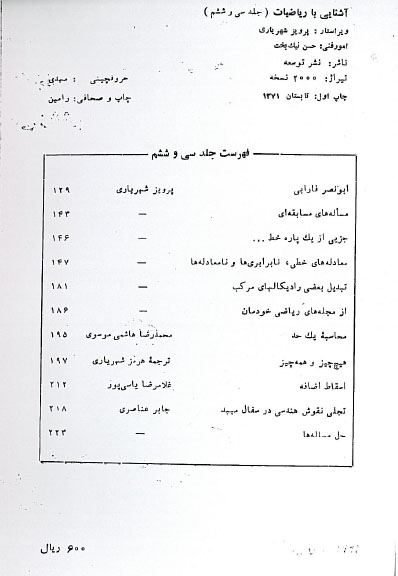 دیگر نسخه های مجله آشنایی با ریاضیات