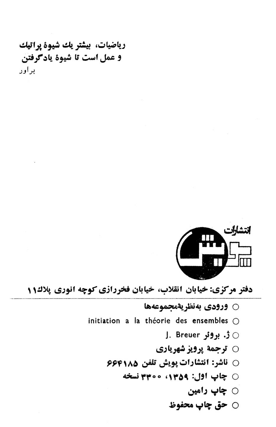 🔖 book_keywords : دانلود فایل pdf ورودی به نظریه مجموعه ها نوشته ژ. بروئر