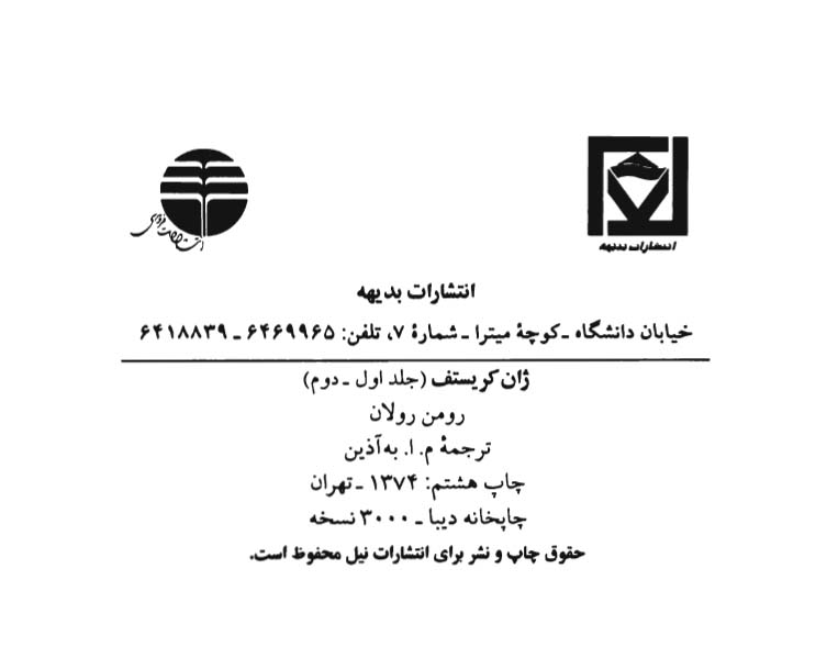 🔖 book_keywords : دانلود فایل pdf ژان کریستف (جلد اول و دوم) نوشته رومن رولان ترجمه محمود اعتمادزاده(م.ا.به آذین),