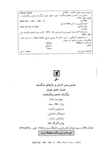 🔖 book_keywords : دانلود فایل pdf عیسی پسر انسان نوشته جبران خلیل جبران ترجمه محسن نیک بخت