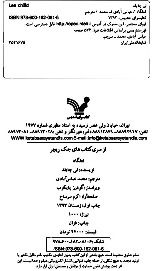 🔖 book_keywords : دانلود فایل pdf قتلگاه نوشته لی چایلد ترجمه محمد عباس آبادی