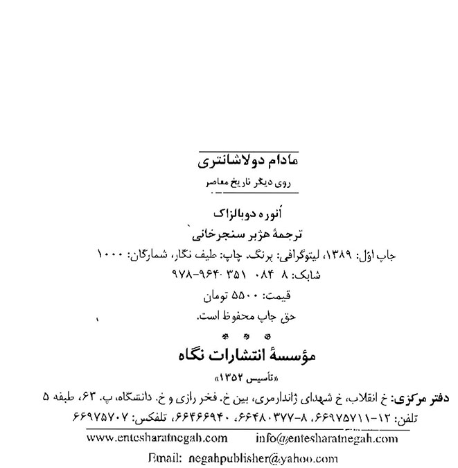 اولین نفری باشید که دیدگاهی را ارسال می کنید برای “مادام دولاشانتری”