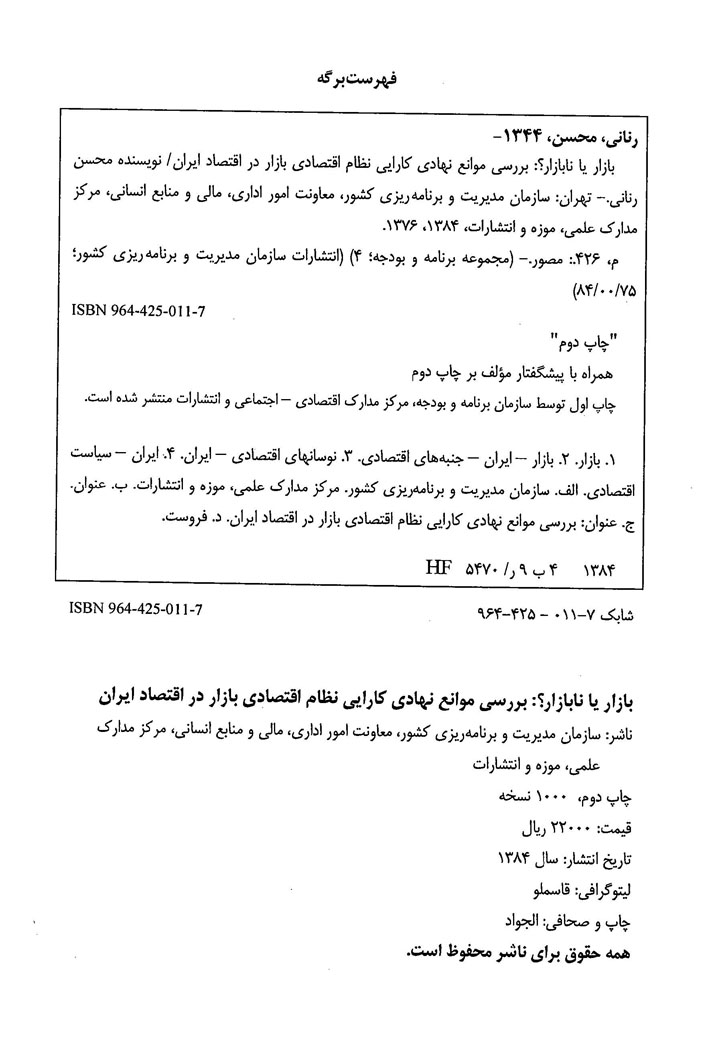 🔖 book_keywords : دانلود فایل pdf بازار یا نابازار ؟ نوشته محسن رنانی