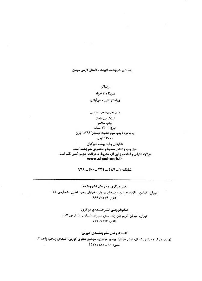 🔖 book_keywords : دانلود فایل pdf زیباتر (زاوش) نوشته سینا دادخواه