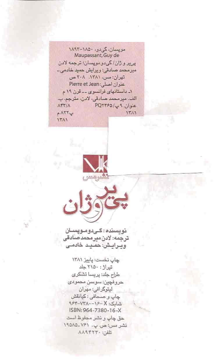 🔖 book_keywords : دانلود فایل pdf پی یر و ژان نوشته گی دو موپاسان ترجمه لادن میرمحمد صادقی