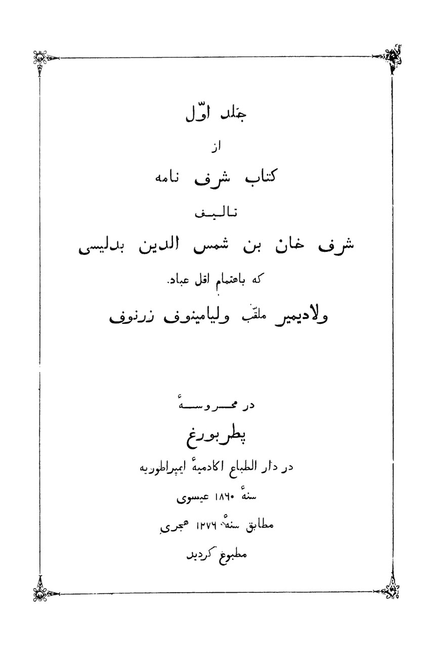شرفنامه: تاریخ مفصل کردستان – جلد اول