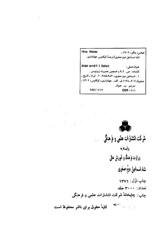 🔖 book_keywords : دانلود فایل pdf شاه اسماعیل دوم صفوی نوشته والتر هینتس ترجمه کیکاوس جهانداری