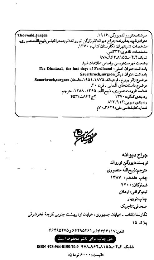 🔖 book_keywords : دانلود فایل pdf جراح دیوانه نوشته یورگن توروالد ترجمه ذبیح الله منصوری