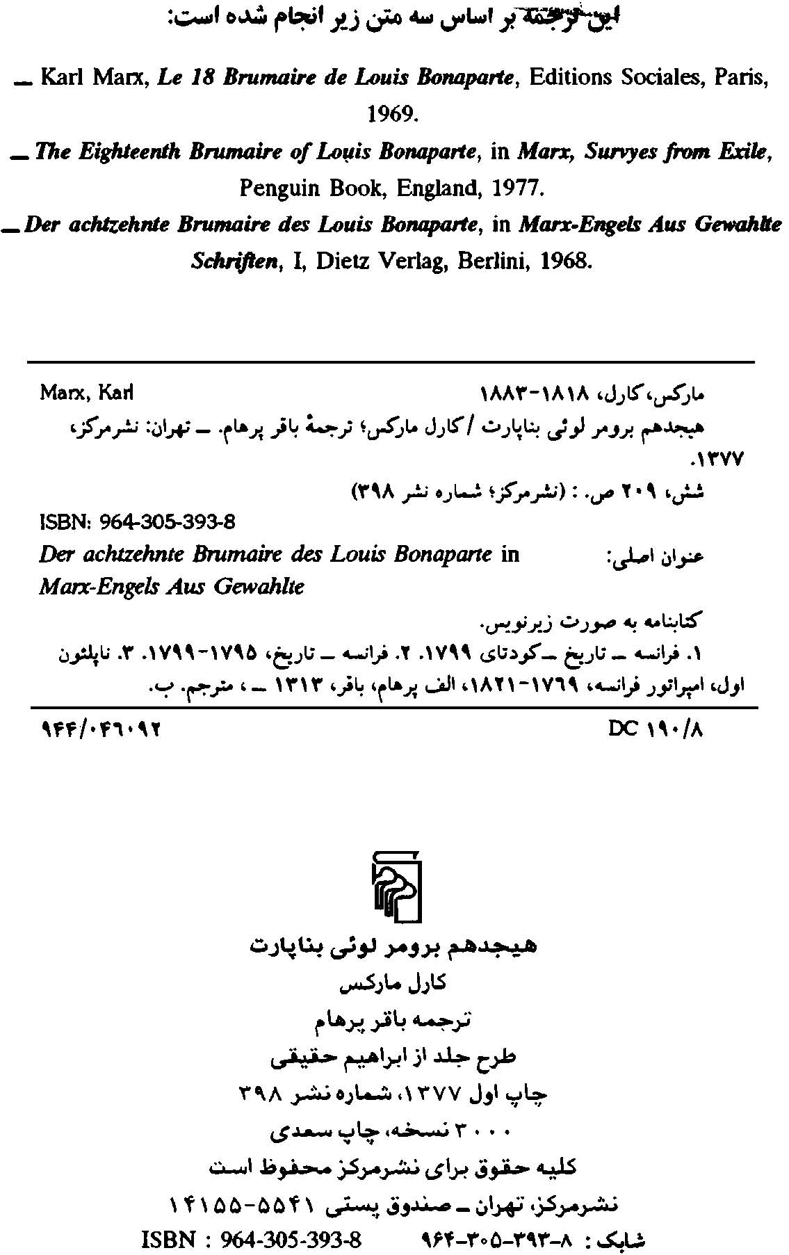 🔖 book_keywords : دانلود فایل pdf هجدهم برومر لوئی بناپارت نوشته کارل مارکس ترجمه باقر پرهام