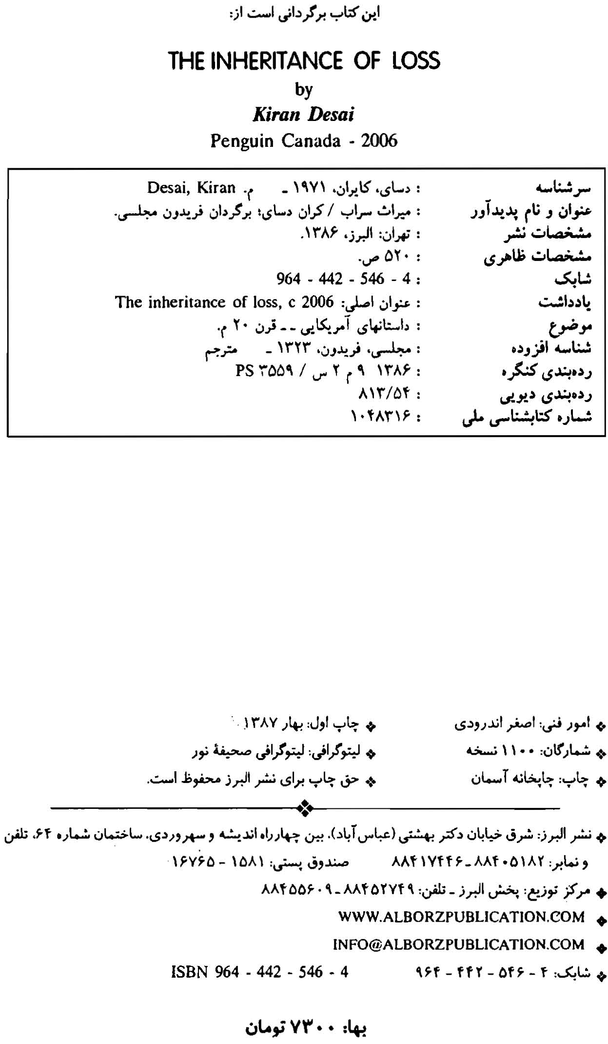 🔖 book_keywords : دانلود فایل pdf میراث سراب نوشته کران دسای ترجمه فریدون مجلسی