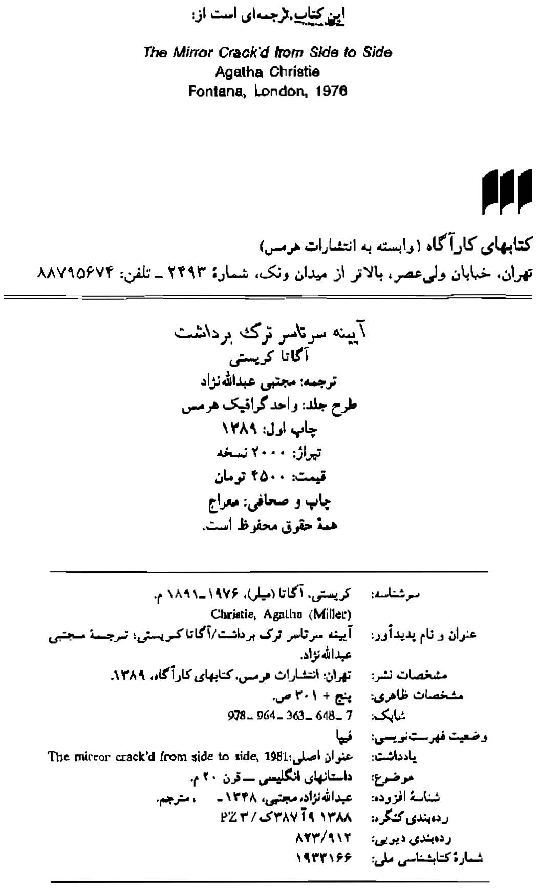 🔖 book_keywords : دانلود فایل pdf آیینه سر تا سر ترک برداشت نوشته آگاتا کریستی ترجمه مجتبی عبدالله نژاد