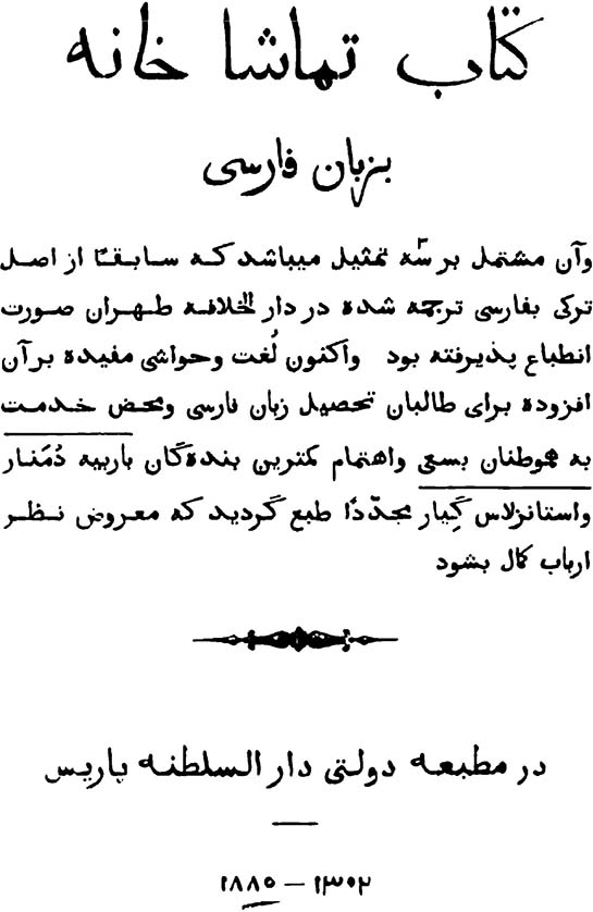 این کتاب مشتمل بر سه تمثیل میباشد که سابقا از اصل ترکی بفارسی ترجمه شده در دارالخلافه طهران صورت انطباع پذیرفته بود و اکنون لغت و حواشی مفیده بر آن افزوده شده و بسعی و اهتمام باربیه دمنار و استانزلاس گیار مجددا طبع گردیده است.