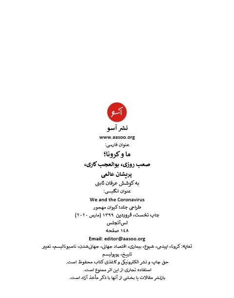 در ششمین دفتر آسو کوشیدهایم تا به بعضی از وجوه سیاسی، فرهنگی، اقتصادی و روانشناختی بحران جهانیِ ویروس کرونا نگاهی دقیقتر بیندازیم. اما ابعاد و دامنهی این بحران چنان گسترده است که ناگزیر دفتر بعدی را هم به آن اختصاص خواهیم داد.